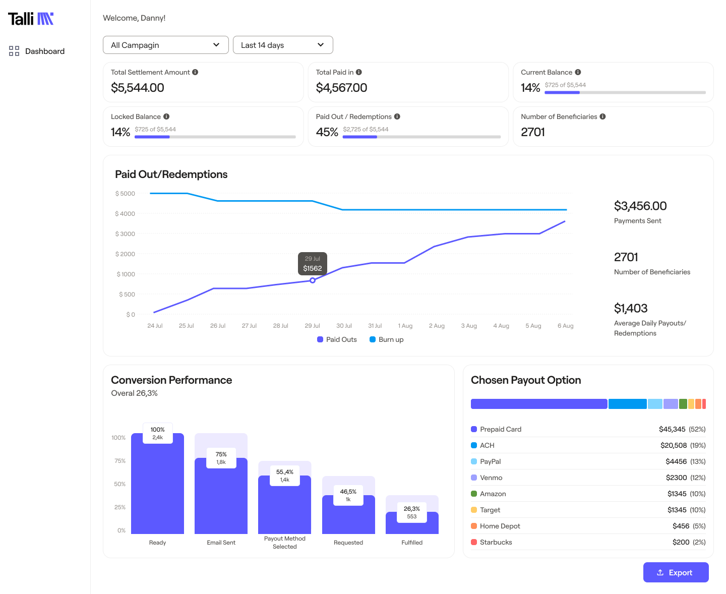 Talli's real-time dashboard solves this by providing administrators and claimants with complete transparency.